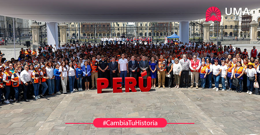 En representación de la comunidad universitaria, un equipo de 20 voluntarios de la UMA formó parte de esta importante actividad que marca el inicio de acciones articuladas orientadas a la preparación y respuesta ante situaciones de emergencia y desastres en el país.