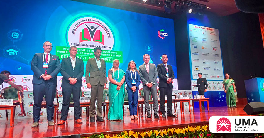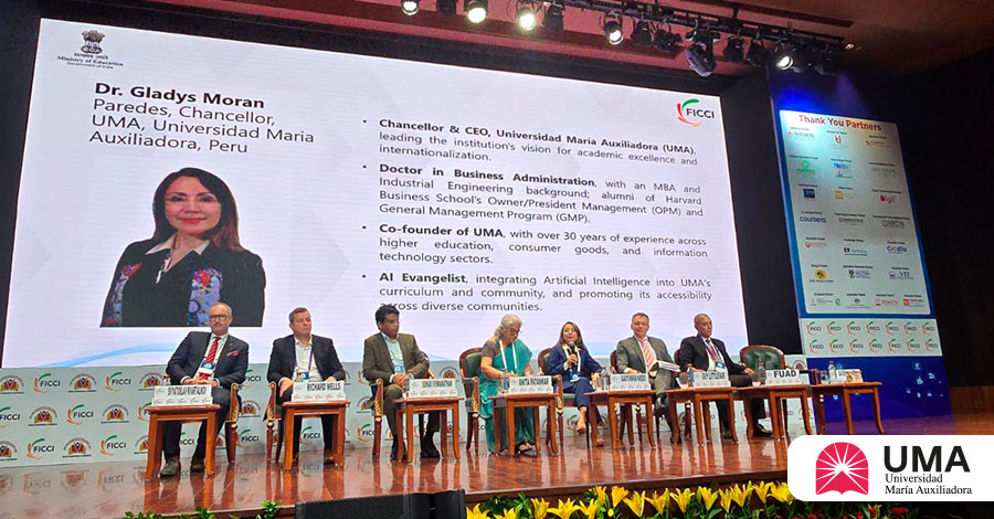 Felicitamos la destacada participación de nuestra Rectora, la Dra. Gladys Moran Paredes, quien representó a nuestra UMA – Universidad María Auxiliadora y a Latinoamérica como panelista en la 20ª Cumbre de Educación Superior de FICCI 2025, realizada en Nueva Delhi.